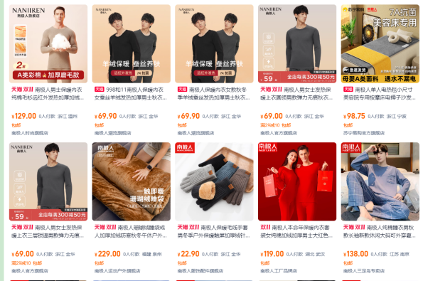 (淘寶平臺上存在諸多的南極人旗艦店)