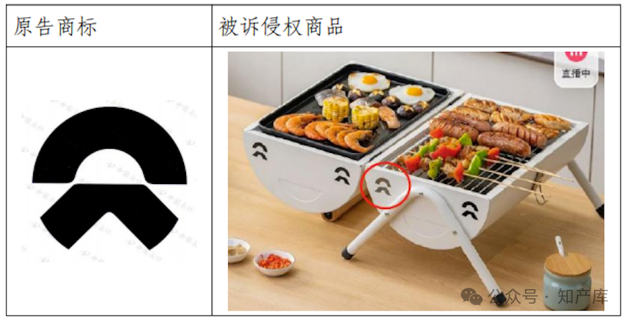 本案中,被訴侵權商品上使用的通風孔的確不是常見的圓形、方形或者三角形等通用形狀,而具有一定的設計,但該設計恰巧跟原告商標一模一樣,由于被告在庭審中未能作出合理解釋,其使用被訴侵權標識難謂善意。并且,原告也有自營的戶外露營商品,也銷售燒烤爐等商品。因此,消費者在看到被訴侵權標識時,很容易聯想到原告蔚來汽車。