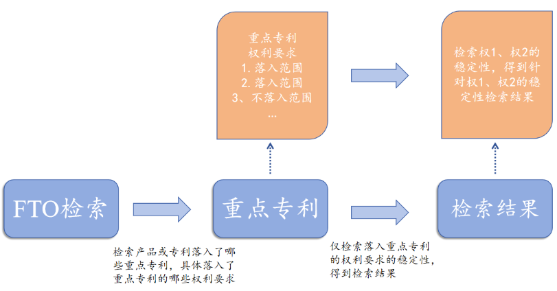 例如,在通過FTO檢索鎖定了重點專利后,進行專利穩(wěn)定性分析時,此場景下,可以考慮檢索的產(chǎn)品具體落入了重點專利的哪些權(quán)利要求的保護范圍,僅針對性地對落入的權(quán)利要求進行穩(wěn)定性檢索,減小檢索難度。