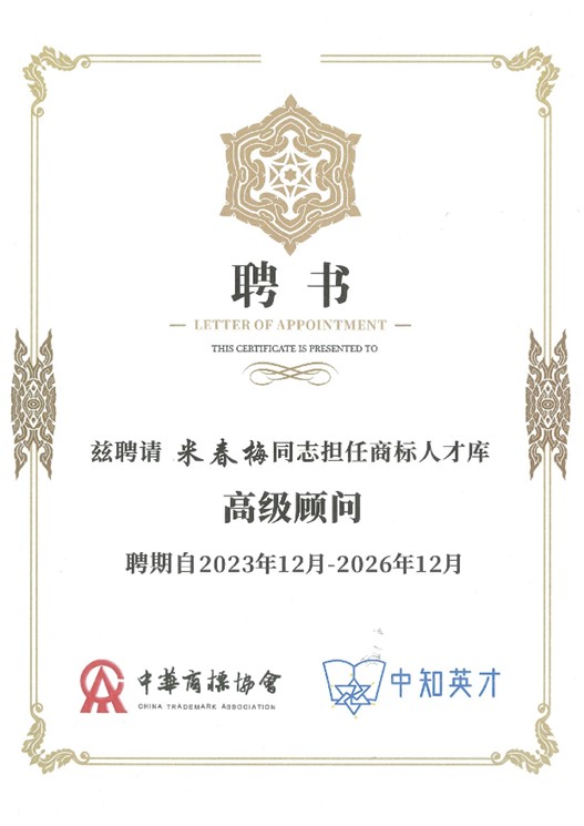 會上,中華商標協會聘請智信禾管理合伙人米春梅為商標人才庫“高級顧問”;合伙人孔歡被中華商標協會人才與教育專業委員會評定為商標人才庫“特級人才”并現場頒發了證書。