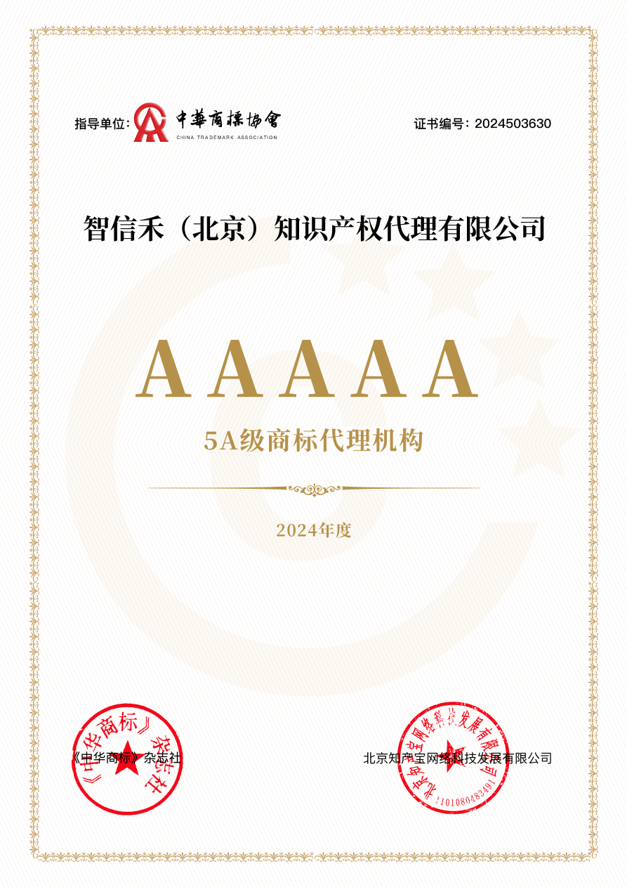 11月22日,第十四屆中國國際商標品牌節歡迎會上,《中華商標》雜志社聯合北京知產寶網絡科技發展有限公司隆重發布了“2024商標代理服務能力數據統計600”,智信禾知識產權再次榮登“5A級代理機構(TOP 100)”榜單!