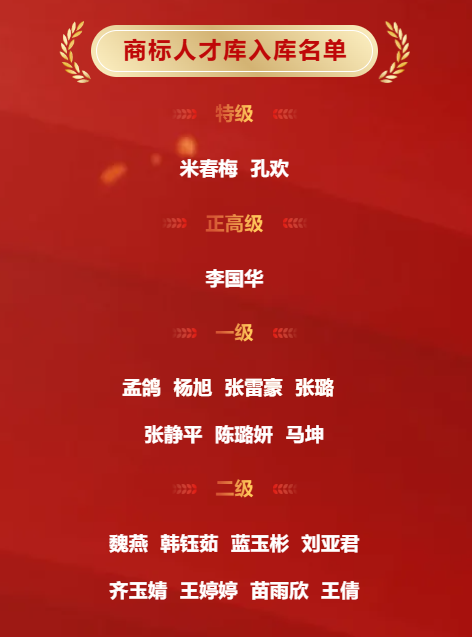 值得一提的是,本次在全國(guó)僅有25位商標(biāo)代理人獲評(píng)特級(jí)的情況下,智信禾管理合伙人米春梅榮列其中,彰顯了她在商標(biāo)代理領(lǐng)域的卓越貢獻(xiàn)和專(zhuān)業(yè)能力,也體現(xiàn)了智信禾在培養(yǎng)高素質(zhì)專(zhuān)業(yè)人才方面的顯著成效。