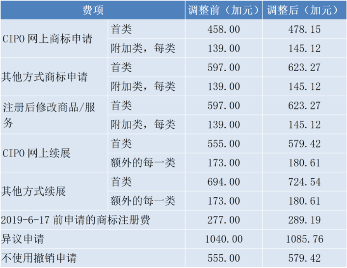 加拿大知識產權局(CIPO)宣布,將自2025年1月1日起上調專利、商標官費,本次費用漲幅約為4%。加拿大專利和商標官費主要項目整理如下: